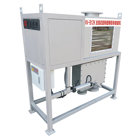 2.由PLC与文本控制全自动的过粉,除磁。无需要人工除铁,方便,由于磁棒是旋转的,可以将堆积在磁棒面上的物料通过旋转掉落到成品口,从而使物料与磁棒更加充分地接触,除铁效果更好。除铁的渣也比传统的数量大大减少